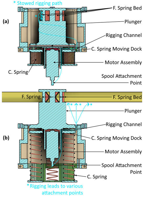 Figure 16). This constrains the moving assembly prior to deployment and serves to ‘sandwich’ the four compression springs, which are compressed between the spring dock of the static assembly and the spring moving dock of the moving assembly.