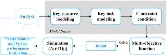 The study focuses on Beijing Metroplex as the research subject to validate the established model through illustrative examples. Key resources and parameters of the instance are statistically analyzed and input into the Gurobi solver to allocate expanded resources at various times, yielding a set of Pareto frontier solutions. To assess the model’s efficacy, benchmark scenarios including single-airport examples, multi-airport minimum examples, and multi-airport maximum examples are proposed. The findings indicate the superiority of the multi-airport model in terms of key resource allocation and coupled resource utilization efficiency. To further validate the model’s configuration effectiveness, real air traffic scenarios involving three airports are simulated using AirTOp simulation software. The results demonstrate that the multi-airport model exhibits lower delay levels and fewer conflicts compared to alternative configurations.