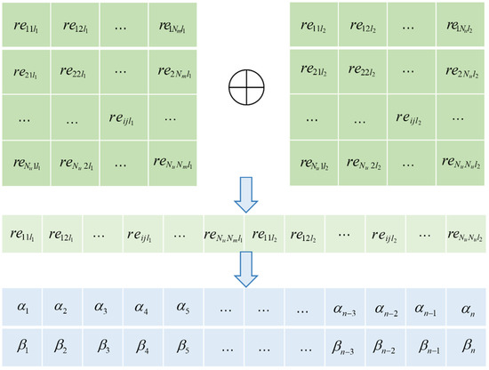 In quantum genetic algorithms, population individuals are represented by quantum chromosomes, and the chromosome genes are stored by each of the smallest units of information in quantum computing–quantum bits. A quantum bit can be in state 1 (denoted as ), state 0 (denoted as ), or any superposition of the two states (called a superposition state). Equation (21) describes the state of a quantum bit: