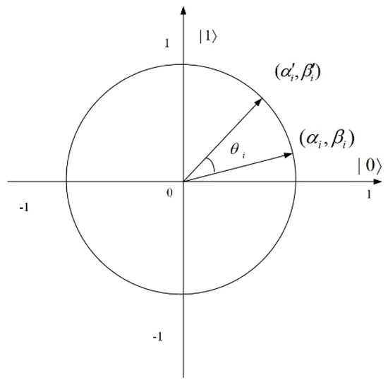That is, the quantum bit is converted to using a quantum bit rotating gate with an angle of . The effect of the quantum gate rotation on the quantum bit operation is shown in Figure 3.
