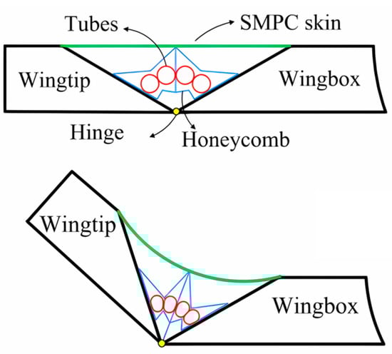 - Sun, J.; Du, L.; Scarpa, F.; Liu, Y.; Leng, J. Morphing wingtip structure based on active inflatable honeycomb and shape memory polymer composite skin: A conceptual work. Aerosp. Sci. Technol. 2021, 111, 106541. [Google Scholar] [CrossRef]