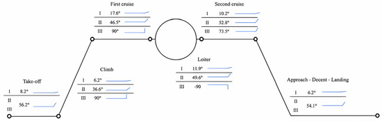 Optimal cant angle for each mission segment, for each of the three examined steps [5].