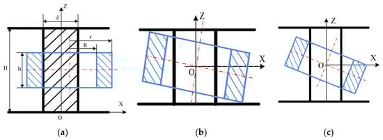 Figure 6 presents the clearance configuration of the revolute joint of the truss structure with the maximum rotation angle α, which falls into the state shown in Figure 5b.