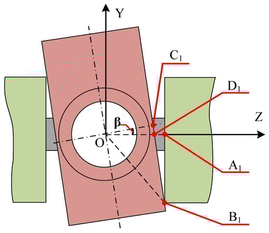The joint state of the rod rotating around the X-axis is shown in Figure 7, where the rotation angle is β.