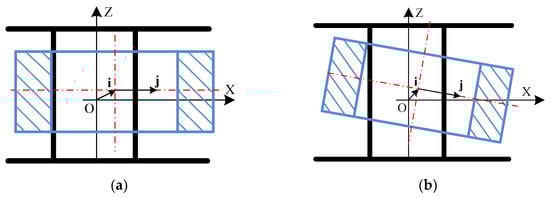 In order to consider an arbitrary rotation state, a new modeling method of clearance for the revolute joint is proposed using vector descriptions. The deviation between the hole and pin centers is described by an offset vector i. The rotation of the rod in the clearance is described by a vector j, which represents the rod alone, as shown in Figure 8.