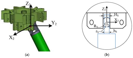 In this section, the model of the spherical joint connecting the disc chuck and the web rod is presented. The coordinate system of the spherical joint is shown in Figure 10.