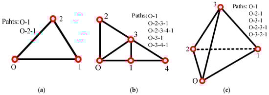 Paths of common structures: (a) planar single closed loop; (b) planar multiple closed-loop []; (c) tetrahedron [].
