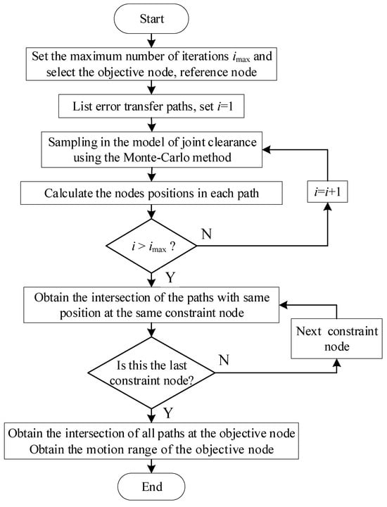 The motion range of the objective node can be obtained by searching for points satisfying the constraints and intersection of the paths. The computational procedure of the error analysis method is provided in Figure 18.