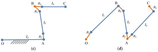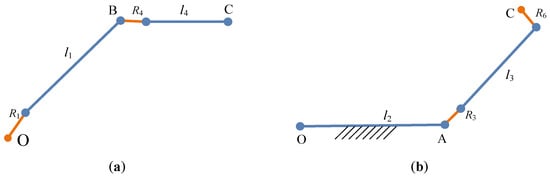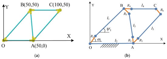 In this section, a numerical example is used to compare the proposed method and the traditional method [,]. Figure 19a shows a structure with two closed loops, and all clearance values are set to 1 mm. A two-dimensional connecting rod is used as the clearance model.