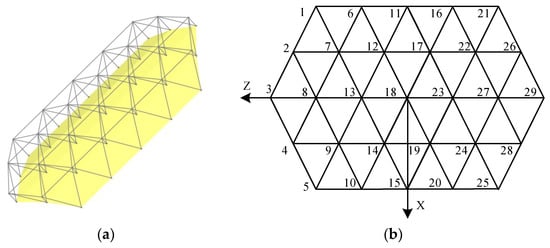 Large deployable truss antennas, known for their high stiffness, high storage ratio, and high deployment reliability, have become widely used in aerospace engineering [,,]. Surface accuracy is one of the important factors in evaluating the antenna’s performance, which is mainly determined by the truss structure; therefore, the accuracy analysis of the truss structure plays an important role in research on large deployable multi-closed-loop truss antennas with joint clearances.