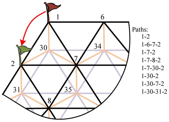 Node 1 was the reference point. Based on the position of Node 1, the deviation from the actual position of its adjacent nodes relative to the ideal position is calculated using the error analysis method presented in Section 3. Considering that paths with a long length cannot provide effective restraints, the maximum length of the error transfer path is set to three steps in each calculation. A calculation process for the deviation of the Node 2 position based on Node 1 is shown in Figure 24.