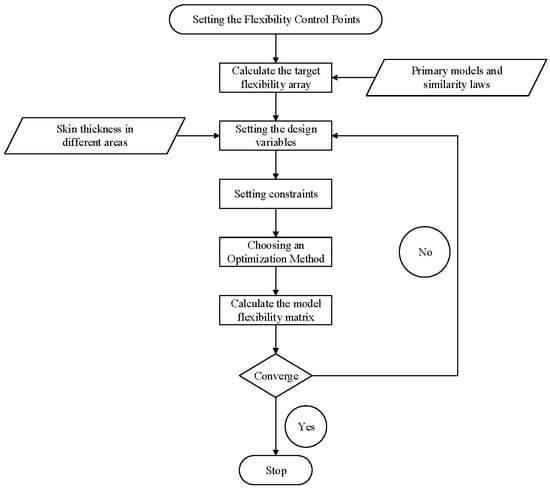 Figure 9. If the reference case model is not optimized and only the thickness of different areas of the skin is calculated according to the scale ratio, the result of the flexibility matrix of the model calculated in this way has an error of more than 30% compared to the target flexibility matrix. After the optimization, the error of the flexibility matrix of the optimized model compared to the target flexibility matrix is less than 5%.