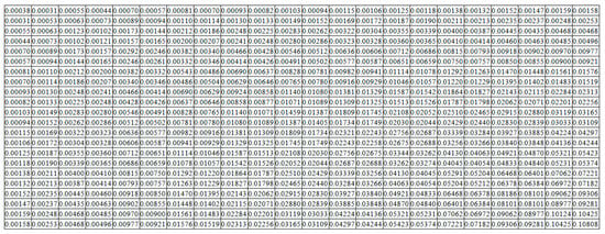 The target of the optimization is that the flexibility matrix of the optimized model agrees with the flexibility matrix of the target model. The flexibility matrix of the target model is shown below in