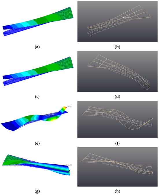 The reasons for the error are as follows: the model has less loading deformation due to its proximity to the root, so it may result in a larger error in the softness influence coefficient matrix between the test model and the simulation model. Although the carbon fiber material is quasi-isotropic, the stiffness of the carbon fiber during actual manufacture did not correspond to what was actually predicted by the finite elements.