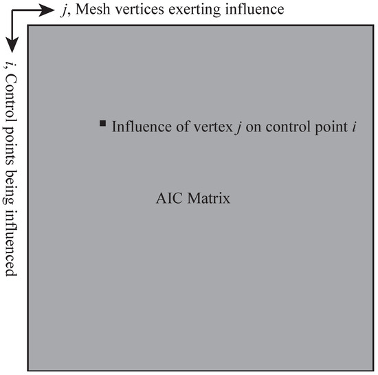 25]. The structure of the AIC matrix is such that the rows correspond to which control point is being influenced, and the columns correspond to which vertex is exerting an influence. This is shown diagrammatically in