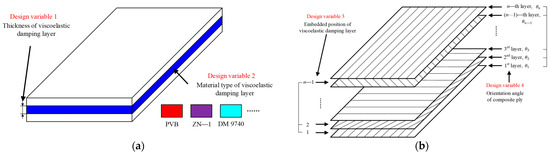 - Xu, C.; Wu, M.Z.; Hamdaoui, M. Mixed Integer Multi-Objective Optimization of Composite Structures with Frequency-Dependent Interleaved Viscoelastic Damping Layers. Comput. Struct. 2016, 172, 81–92. [Google Scholar] [CrossRef]