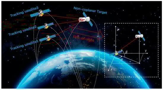 With the continuous exploration and utilization of the space environment by humans, a growing number of non-cooperative targets have emerged, including space debris, defunct satellites, and other orbital fragments. If these targets are not effectively tracked and managed, they pose a serious risk to the operational safety and sustainability of spacecraft in orbit. Therefore, research on the localization and rendezvous of these non-cooperative targets is of great significance. Most existing studies have been conducted under the assumption that a target and trackers are within the same orbital plane, and there has been little research on targets in non-coplanar orbits. However, in practice, most of these non-cooperative targets are in non-coplanar orbits. Achieving coplanar rendezvous requires significant orbital maneuvers to transfer the tracking spacecraft to the target’s orbital plane. This process is complex, time-consuming, and inefficient for conducting multiple rendezvous missions concurrently. Therefore, the ability to directly intercept and track non-cooperative targets in non-coplanar orbits could greatly enhance the efficiency of space operations. This highlights the significant research value of developing methods for the tracking and localization of non-cooperative targets in non-coplanar orbits.