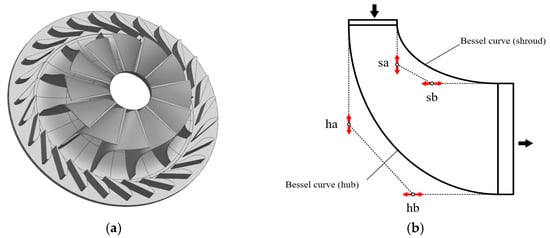 (a) Turbine model; (b) meridian plane and Bessel curve control points.