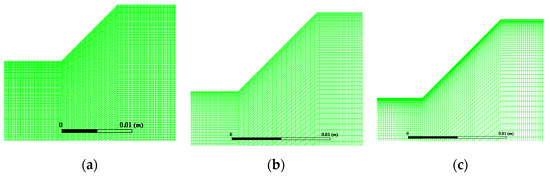 Since the flow near the backward step and the wall is complicated, the adjacent area is locally refined to ensure that the ability to capture vortices of different scales is in place. The meshes around the boundary layer, step corner, and cavity corner were carefully refined, where Y+ was made to be as close to 1 as possible. As Figure 2 shows, three sets of meshes were constructed in this study with sequentially increased grid numbers: 140,000, 270,000, and 520,000, respectively.