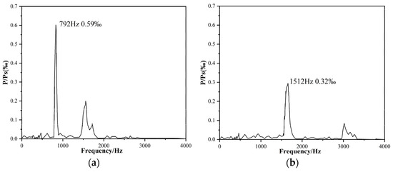 Compared with the experiments, as shown in Table 3, the two main frequencies obtained in the simulations are quite close to those in the experimental data. The biggest difference, 3.57%, occurs when the frequency at the first-order mode is predicted, which is still allowed by the precision requirements. The results show that the numerical methodology established in this study can accurately and effectively predict the characteristics of the engine’s flow field.