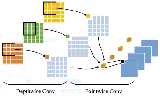 Depthwise separable convolution is a novel architecture for convolutional neural networks that was initially proposed by François Chollet [] in 2017. It has been demonstrated that using this method, rather than traditional convolutional operations, can substantially reduce the number of network parameters and computational costs while maintaining model accuracy. This approach has been successful in numerous applications, particularly in resource-constrained mobile device environments, such as MobileNet [].