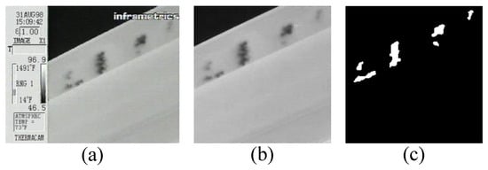 The experimental data were derived from an infrared thermal imaging video. The video frames were extracted with an interval of 3 frames, resulting in a total of 1180 infrared images with a resolution of , as depicted in Figure 10a.
