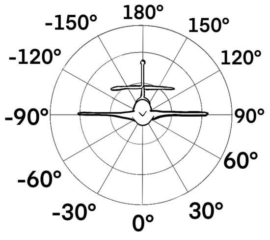 Definition of the ray-tracing azimuth angles around an aircraft flying towards the reader. Positive azimuth angles are defined towards port side, negative azimuth angles towards starboard side.