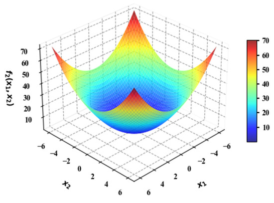 Figure 2 shows the 3D plot of , illustrating that the function exhibits mirror symmetry. The variations in design variables and are completely consistent. Therefore, when varying the design space, only the design variable is considered, while the design variable is fixed within the range of [−5,5].