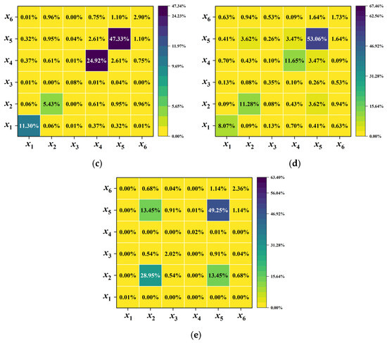 The core concept of the functional variance analysis method is variance decomposition. Functional variance decomposition involves decomposing the total variance of the function into the sum of the partial variance contributed by individual design variables and their interactions with other design variables. This decomposition provides a quantitative measure of each design variable’s contribution to the objective function. Assuming the input–output relationship of the system can be described by the equation , where denotes a n-dimensional vector of independent input variables and denotes a one-dimensional vector of the output response. The probability density function of each random variable is , the joint probability density function of is . When the input variables are independent, the joint probability density function can be expressed as . According to the low-dimensional representation of the high-dimensional model, can be expanded as follows: