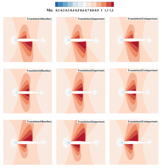 - Translation 3: On the upper surface, the shock-wave strength is significantly enhanced by perturbations in important variables, with little change when unimportant design variables are perturbed. On the lower surface, the shock-wave strength decreases with perturbations in unimportant variables but increases when important variables are perturbed. Overall, the drag coefficient increases by 62.68% when important variables are perturbed, whereas it increases by only 4.93% when unimportant variables are perturbed.