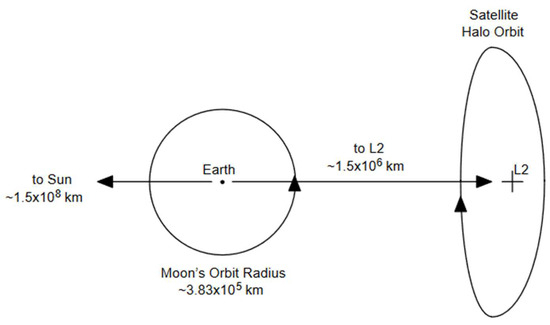- Evans, S.W. Natural Environment Near the Sun/Earth-Moon L2 Libration Point. In Next Generation Space Telescope Program; NASA: Greenbelt, MD, USA, 2003. [Google Scholar]