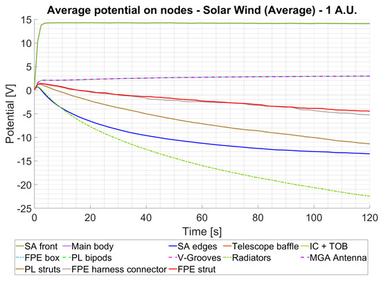 Surface potential evolution—solar wind (1 A.U.)—average conditions.
