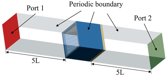 Figure 6. Due to the presence of a PEC reflector, Port 2 on the other side is shielded; hence, all corresponding unit lengths and frequencies of the absorbing structures satisfy