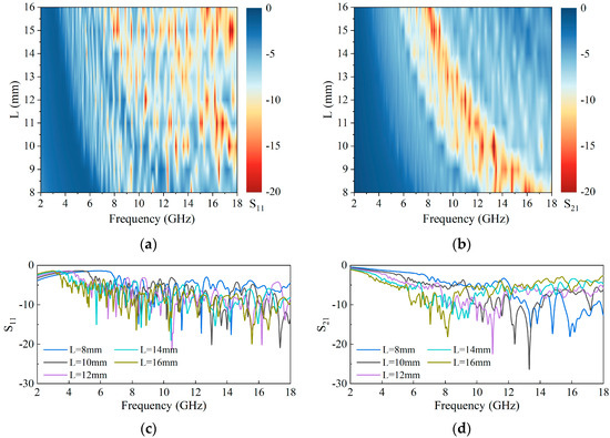 The S-parameter contour of RASs with varying unit lengths and frequencies is displayed in