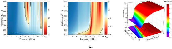 . Only unit lengths of 10 mm and 12 mm exhibit a complete 90% absorption bandwidth across the 8–18 GHz frequency band, indicating that the selection of unit lengths must consider the constraints imposed by design specifications. Within the scope of this study, choosing relatively smaller unit lengths and lower resistances benefits the low-frequency, low-detectable capability of the RAG-R, while selecting larger unit lengths and higher resistances enhances the high-frequency, low-detectable capabilities.