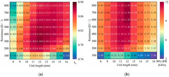 . Meanwhile, large bandwidths are primarily concentrated in medium unit lengths from 10 mm to 12 mm and higher resistances ranging from 400 to