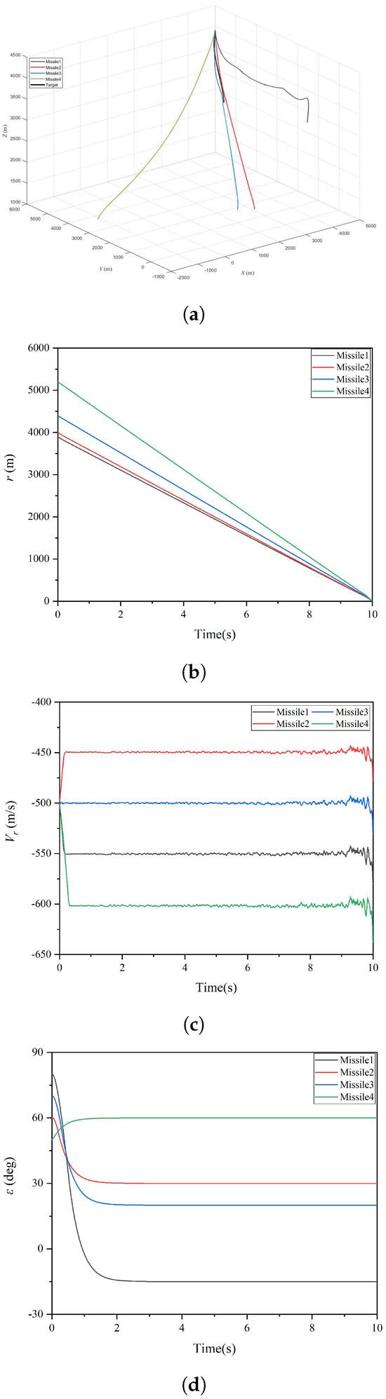 - Zhang, W.; Du, X.; Xia, Q. A three-dimensional cooperative guidance law based on consensus theory for maneuvering targets. Math. Probl. Eng. 2019, 2019, 2120745. [Google Scholar] [CrossRef]