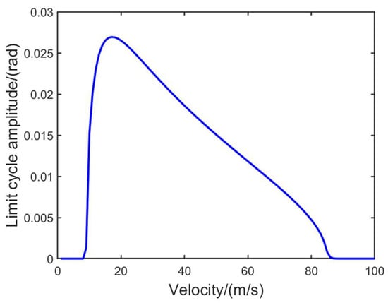 From the bifurcation diagram of Figure 12, it can be seen that as the linear damping increases, the amplitude of the limit cycle begins to decrease. At a linear damping value of 19 Nms, the limit cycle disappears, and the system tends to stabilize. By comparing the results of the linear analysis, it can be observed that when the speed is 30 m/s and the damping coefficient is 19 Nms, all the real parts of the eigenvalues are negative, indicating that the system is stable and convergent.