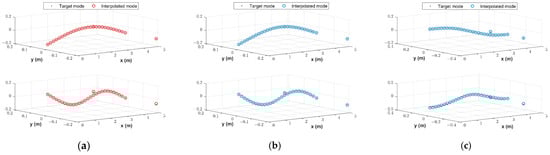 Comparison of target modes and interpolated modes. (a) and , (b) and , and (c) and .