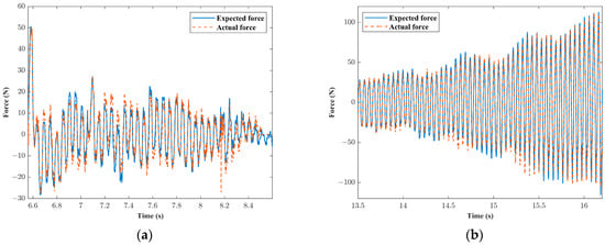 Comparison of expected force and actual force under C2 flight control law. (a) , and (b) .