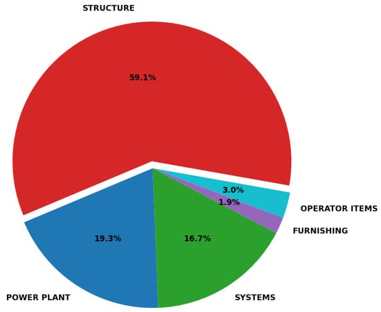 As can be immediately seen, results are quite similar, especially for the wing and the fuselage where there is a minor difference. The environmental impact on tails and landing gear would be even closer if Howe’s study had considered the structure as also consisting of the nacelles and pylons, as is achieved by the proposed method. Nevertheless, the weight of these components in Howe’s study was probably spread evenly over other subsystems.