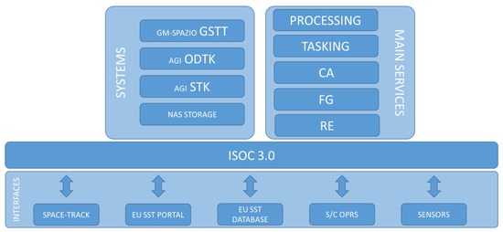 Italy’s participation in the EUSST program involves three entities: the Italian Space Agency (ASI), the Astrophysics National Institute (INAF), and the Italian Ministry Of Defence, with the Italian Air Force (AM) largely involved. Italy’s specific role within this program pertains to re-entry and fragmentation services. To effectively manage the vast amount of observational data, there is a need for the development of efficient and reliable tools. In this context, the Flight Test Department of the Italian Air Force is responsible for establishing a system architecture which collects and processes data to provide SSA services to both military and civilian users, as well as to the EUSST consortium. The system, named the ISOC Suite after the Italian SST Operational Centre (ISOC) of the Italian Air Force, has been meticulously designed with a web-based infrastructure, where space objects and associated data populate a catalog [18]. The ISOC Suite provides SST services and functions which work in unison to enhance awareness of space events in Earth-centered orbits. The embedded software is the result of a collaborative effort with national industry and academia, designed and implemented with a focus on operational requirements.