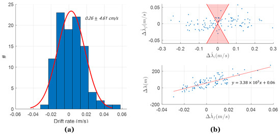 (a) Drift rate at the final state of rendezvous. (b) The final drift rate compared to the initial drift rate (Top) and drift distance (Bottom).