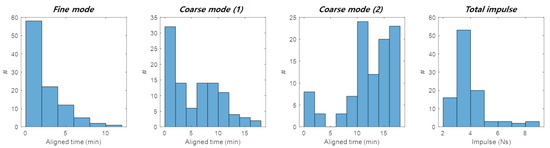 Aligned time and total impulse for the fine requirement, coarse requirement (1), and coarse requirement (2) during IAH.
