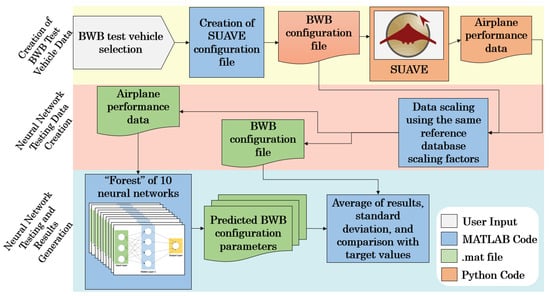 The author’s previously published research [9] focused on developing a framework to support the aforementioned objective, albeit within the context of applying it to conventional, TAW, single-aisle, twin-engine, commercial transport category airplane configurations such as those in the same class as the Boeing 737 Next Generation family. The work outlined in this paper is an expansion and adaptation of the authors’ previous work, focusing specifically on application to the inverse design of unconventional airplane configurations, namely BWBs. Compared to previously published research, changes have been introduced to the framework, namely a larger airplane design and performance database; more robust neural network model generation, training, and testing methods; and an improved approach for extensibility analysis.