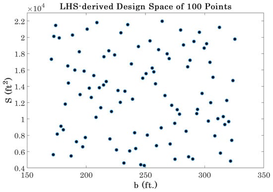 Visualization of 100 LHS-derived span and wing area combinations.