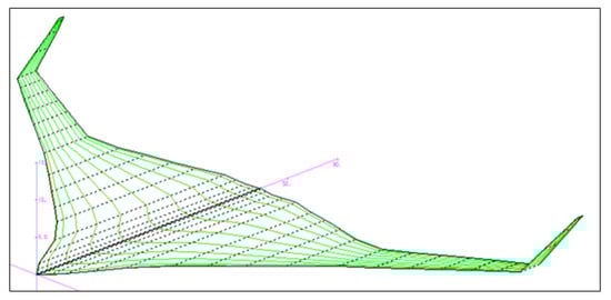 To develop neural network models capable of inverse design, i.e., predicting BWB configuration design parameter values when supplied with mission-dependent BWB performance data, a database was created containing two distinct parts—BWB configuration definition and its respective performance data. Typically, neural networks require a large amount of training data placing importance on the ability to generate such data in a rapid and automated manner—this is especially important in the conceptual-level airplane design cycle [37]. To enable the quick creation of BWB configurations, a parametric-based BWB geometry model was developed, where through the specification of wingspan and wing area, a new BWB vehicle design can be generated.