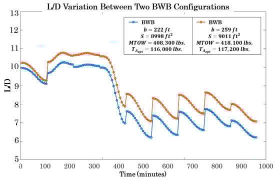 L/D variation across two generated BWB configurations.