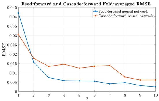 Feed-forward and cascade-forward fold-averaged RMSE.