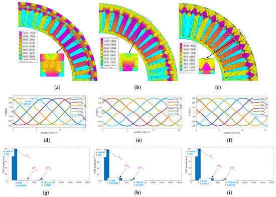 A threshold of is taken as a reference value for the FEM maximum value, where is the DC bus voltage. For the PM material, the remanent flux density value is about . The number of coils per phase depends on the winding configuration.